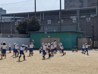 ボールを高く投げてキャッチする運動を楽しんでいました。