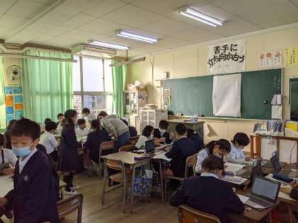 割りばしや指をスティックのようにして、リズムを打っていました。