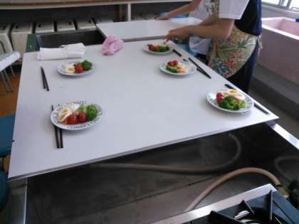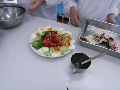 よくわからず、家庭科室にいくと「ゆで卵と野菜」の盛り付けがグループごとに8つありました。