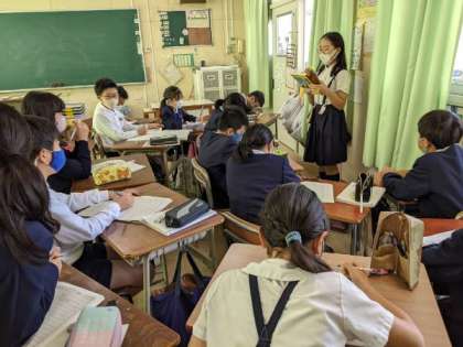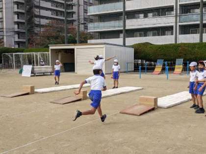 走り幅跳びのコツをつかもうと何度も挑戦したり、感じたことを友だちに伝え合ったりしていました。
