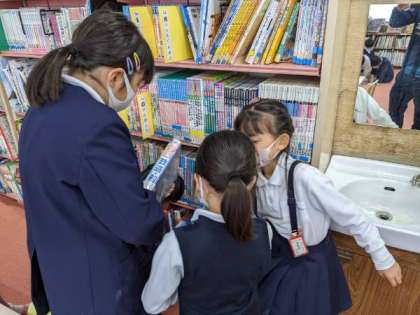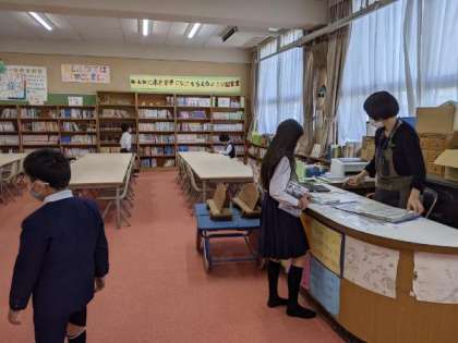 図書館補助員さんが来校していたので、休み時間はずっと図書室が開放されていました。