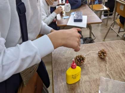 総合的な学習の時間「松ぼっくりでクリスマスツリーをつくろう」