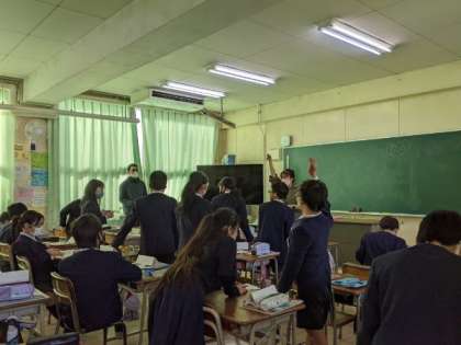 C-NETの先生とクリスマスカードのビンゴゲームをしていました。