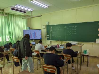 平均値や最大値など、資料から読み取れることを習熟度別に分かれて学習していました。