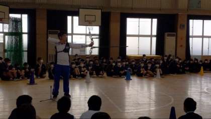 古川高晴さんをお招きして、アーチェリーの実射をみせていただきました。