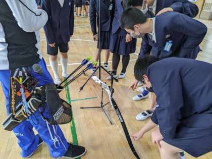 実射がおわったあとは、アーチェリーに触れさせてもらったり、お話を聞いたり、質問をしたりしました。