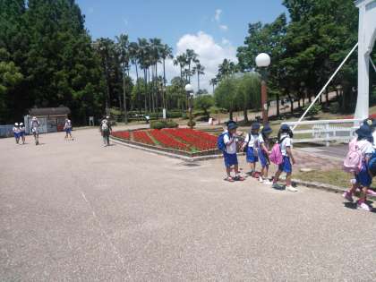 1年生は国際庭園に行って、いろいろな国の花を見て歩きました。