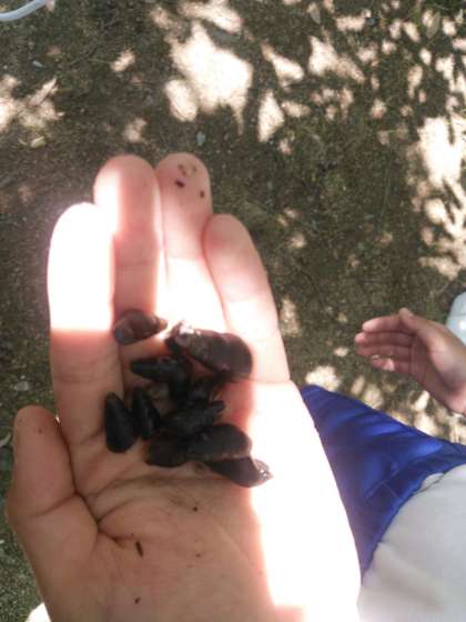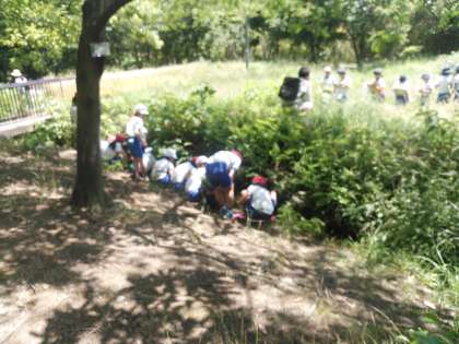 3、4年生はせせらぎで、ザリガニやタニシをとったりして楽しんでいました。