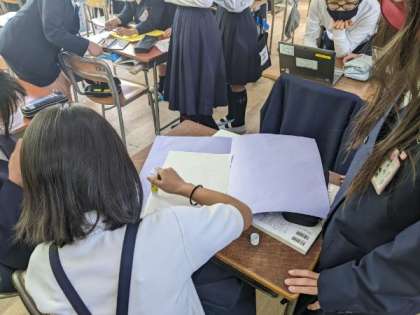グループに分かれて、自分たちが調べたことをまとめていました。