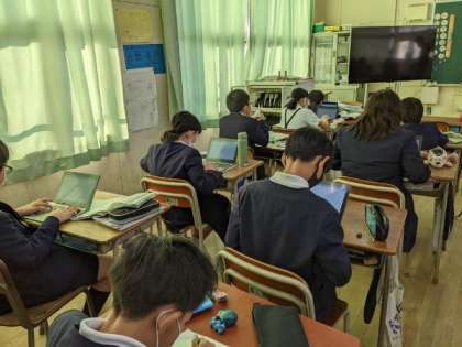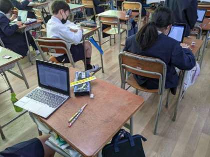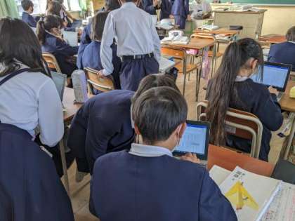 学習者用端末を使って、自分が考えた内容をまとめていました。