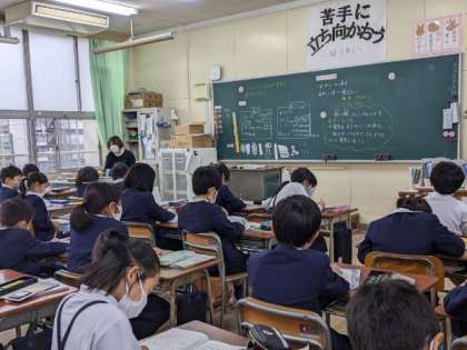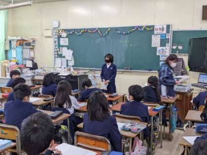 好きなことについてまとめた文章をみんなの前で発表していました。