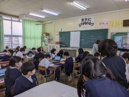 グループに分かれて、パラリンピックについての新聞づくりに取り組んでいました。