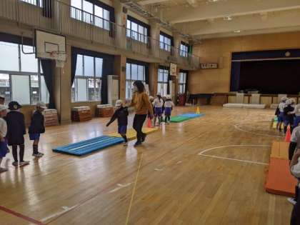 マットの並べ方や直し方を確認したり、思い思いの転がり方を楽しんでいました。