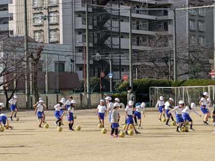 ボールを使って、楽しみながら足でコントロールする力を高めていました。