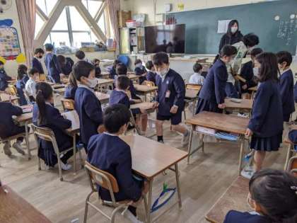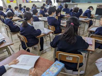 新しい座席で新しい友だちと楽しく学習する準備をしていました。