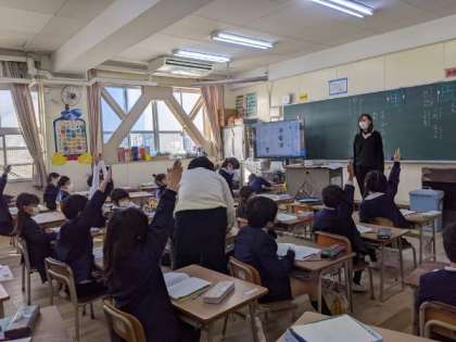 あいさつを盛り上げるために、全校で取り組んでいます。