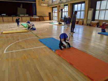 前転がりや後ろ転がりなど、いろいろなころがりかたを楽しんでいました。