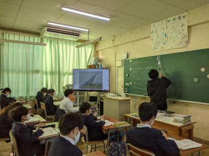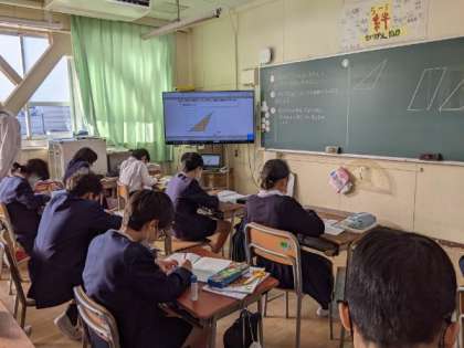少し変わった形の三角形の面積の求め方を習熟度別に分かれて、学習していました。