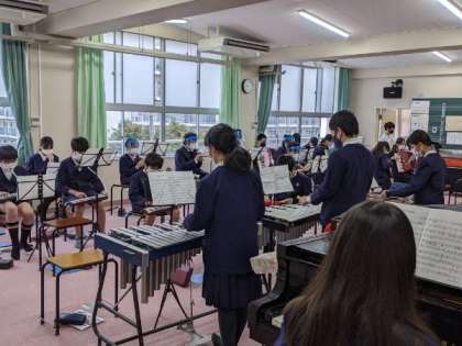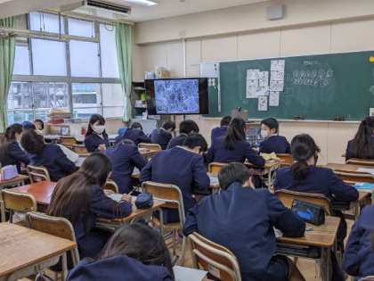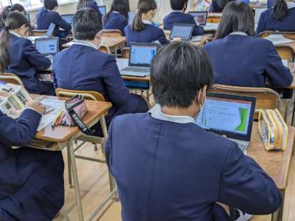 学習者用端末を使って、平和について学んだことをまとめていました。