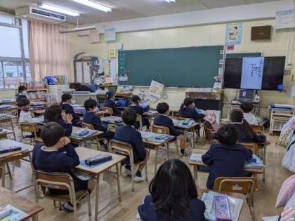 月曜日の朝は、運動場に集まって児童朝会や児童集会をしていますが、この状況ですので、教室で放送機器を使って、児童集会を行いました。