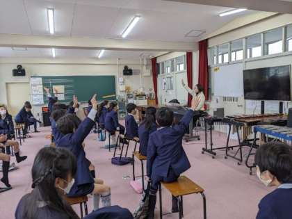 音楽を聞いて、何の楽器があったのか、発表していました。
