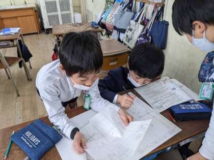 グループに分かれて、自分たちが調べたことをまとめていました。