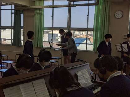 感染症対策をし、合奏の練習に取り組んでいました。