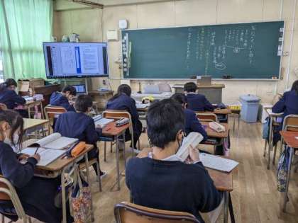 剣の舞を聞いて、どんな感じがするか交流していました。