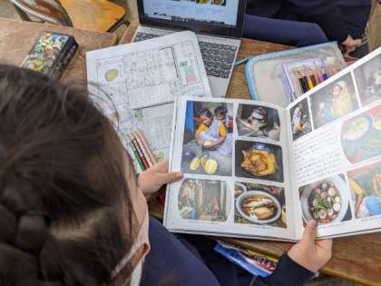 自分たちでいろいろな国の家やそれにかかわるものについて新聞づくりをしていました。