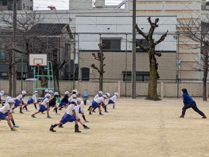 準備運動をしっかり行い、なわとびやボールけりあそびの学習に取り組んでいました。