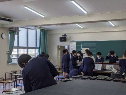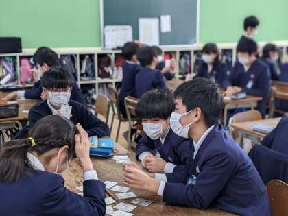 来週のあいさつ運動にむけて、学校全体で作ったあいさつかるたに取り組んでいました。