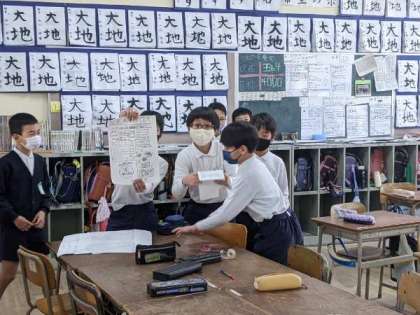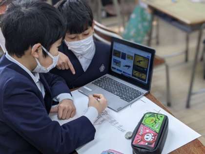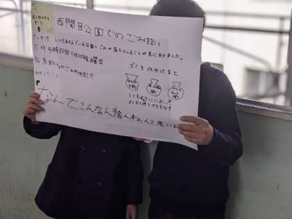 グループになって、これまでに取り組んできたことのまとめをしていました。