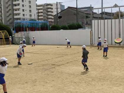 ドッジビーを投げたりキャッチしたりする練習をしていました。