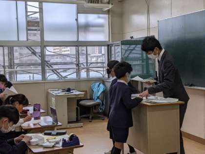 最後のお話を聞いたり、通知表を受け取ったりしていました。