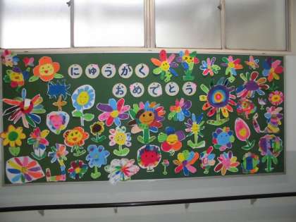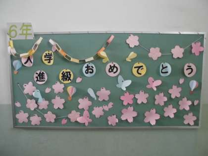 校内の掲示板も入学・進級おめでとうバージョンになっています。