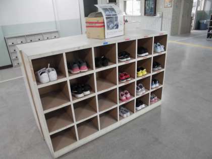 校舎内を歩いていて、1階のロビーのくつばこを見ると、みんなきれいにそろえて入れてあるのに気づきました。見ていてとっても気持ちがいいですね。