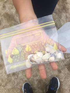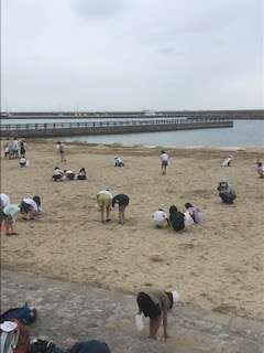 浜辺に移動して、浜遊び。クラフト用の貝がらを集めました。