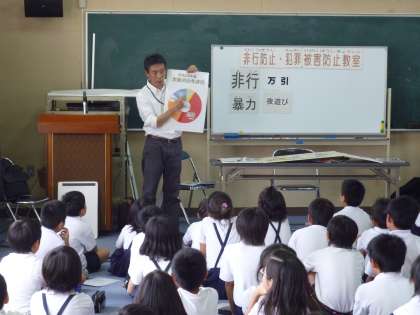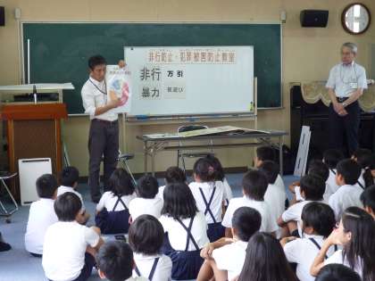 5年生全員に対して、大阪府警本部の防犯担当の方から、非行防止教室を開いていただきました。善悪の判断を、自分でしっかりしましょう。