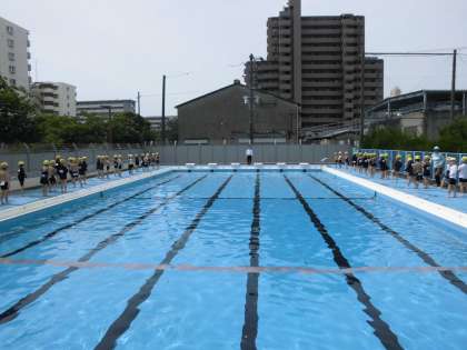 本校では本日からプール水泳授業が始まりました。