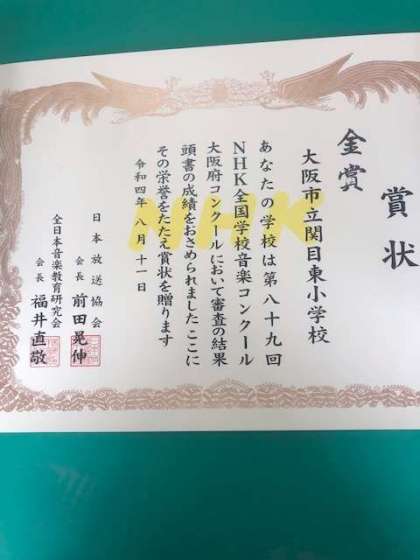 府内から12の小学校が参加し、本校合唱部は 金賞 に選ばれました。