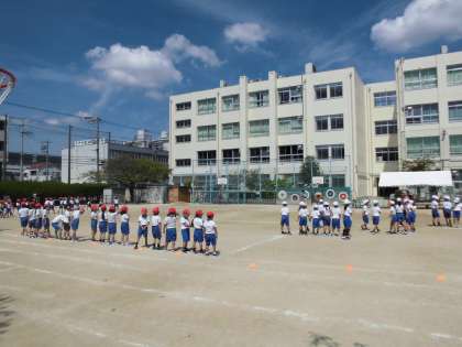 この練習は3時間目に行いましたが、4時間目以降、暑さ指数の関係もあり、本日の運動場での練習は中止することといたしました。