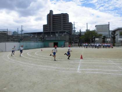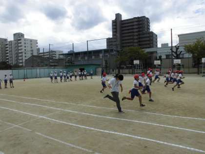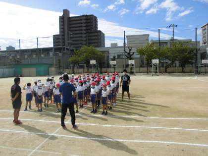 今日は5年生対象に(株)ミズノさんから講師の先生をお招きして、ミズノ走り方教室を開催しました。