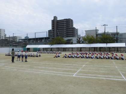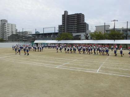 児童席からの入場のタイミングや、歩くコースの確認、声出しなど、一つ一つの動きをしっかりチェックしていました。