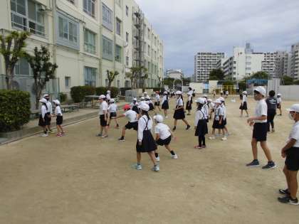 「だるまさんがころんだ」「大縄跳び」などを1〜6年のたてわり班で楽しく遊びました。