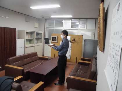 今日は雨のため、校長室からteamsでおこないました。