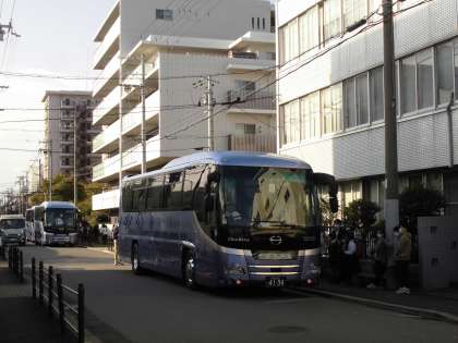 さて、朝、出発式を終え、バスに乗り、出発!