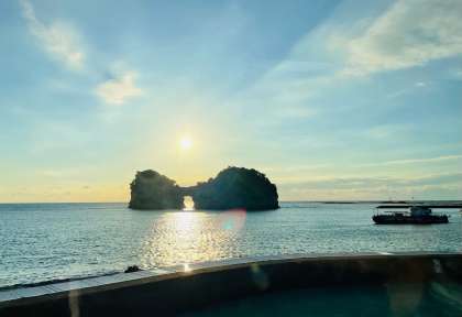 バスの運転手さんのご好意で、ホテルに行く前に円月島に案内してくれました。