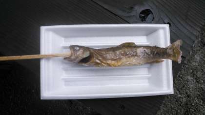 つかみ取りでとったイワナを塩焼きにしてくださいました。
