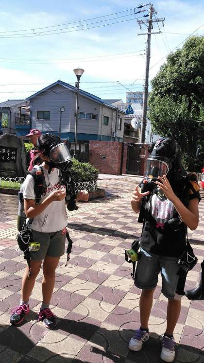 消火器を使ったり、放水をやらせて頂いたりしました。