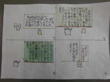今回はヘイトスピーチについて調べたグループが漫画形式で発表をしました。